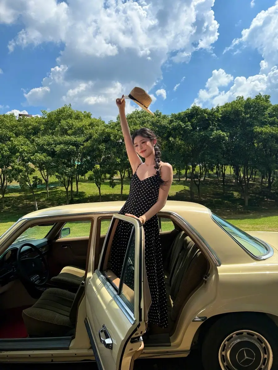 27日,林允(明星經(jīng)紀公司)在社交平臺上曬出一組戶外美照,她身穿黑色波點吊帶長裙,站在車里探出身子拍照,狀態(tài)松弛,美貌養(yǎng)眼!