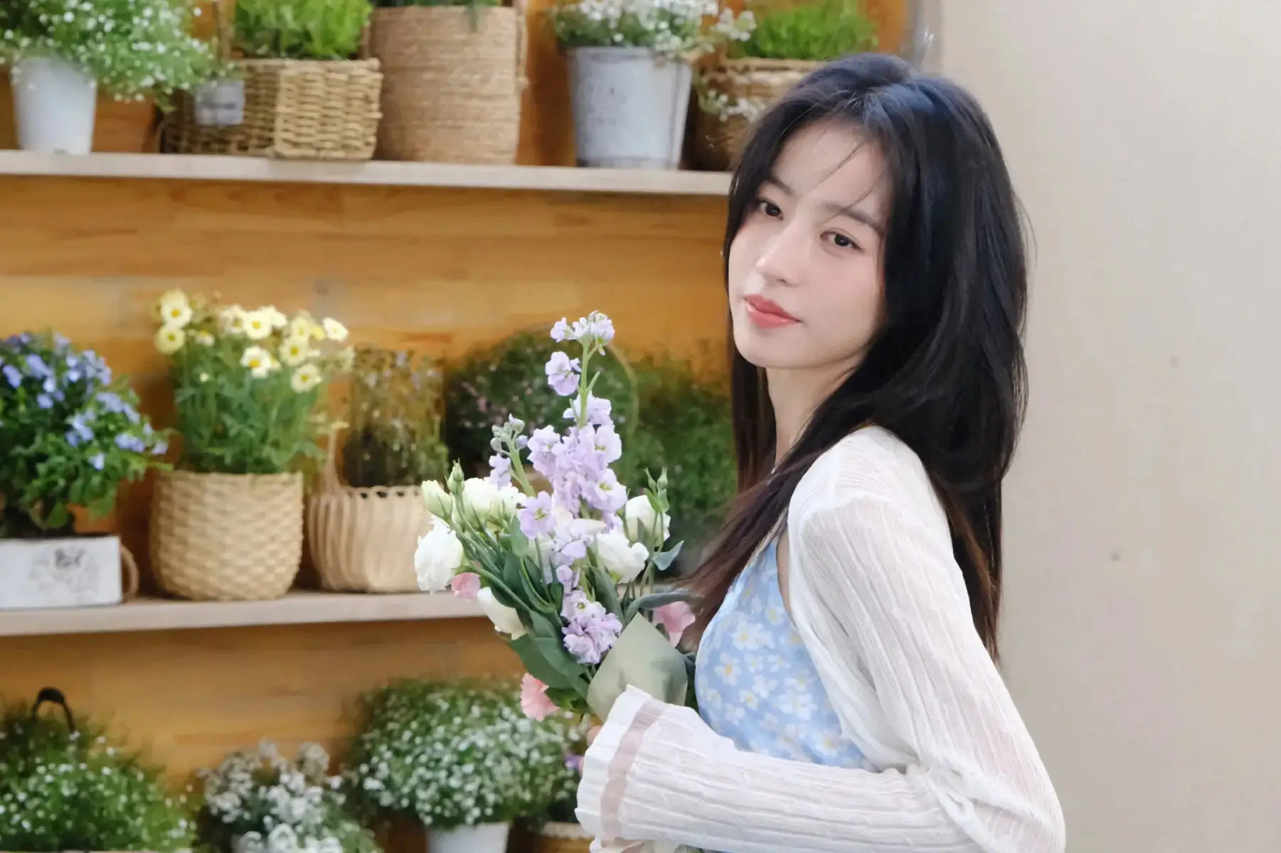 金晨純白造型簡約大氣 手捧鮮花清香溢出屏幕