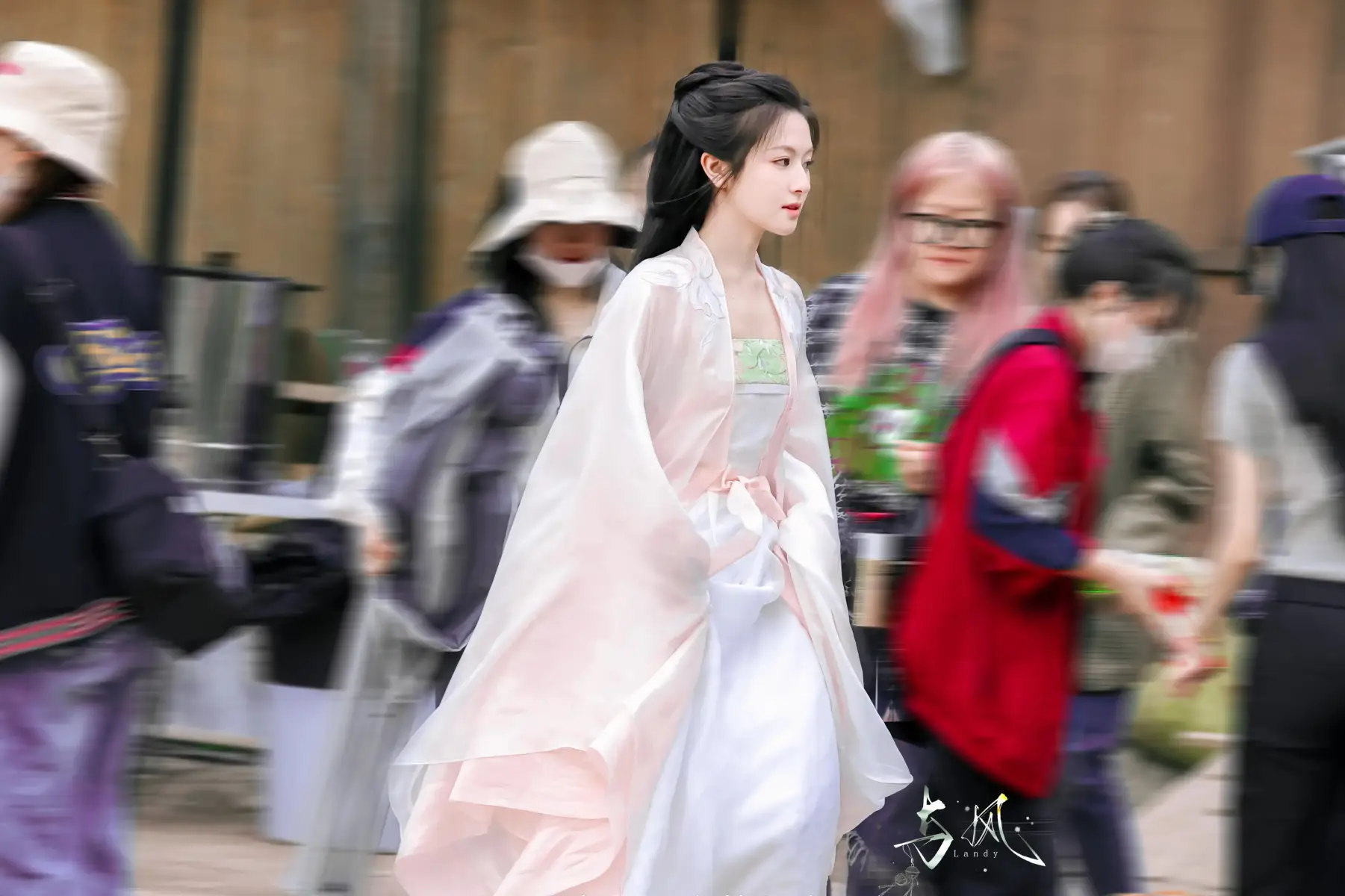 日前,李蘭迪拍攝新劇的路透照曝光,照片里的她穿粉色古裝,匆匆前行,氣質(zhì)溫柔。