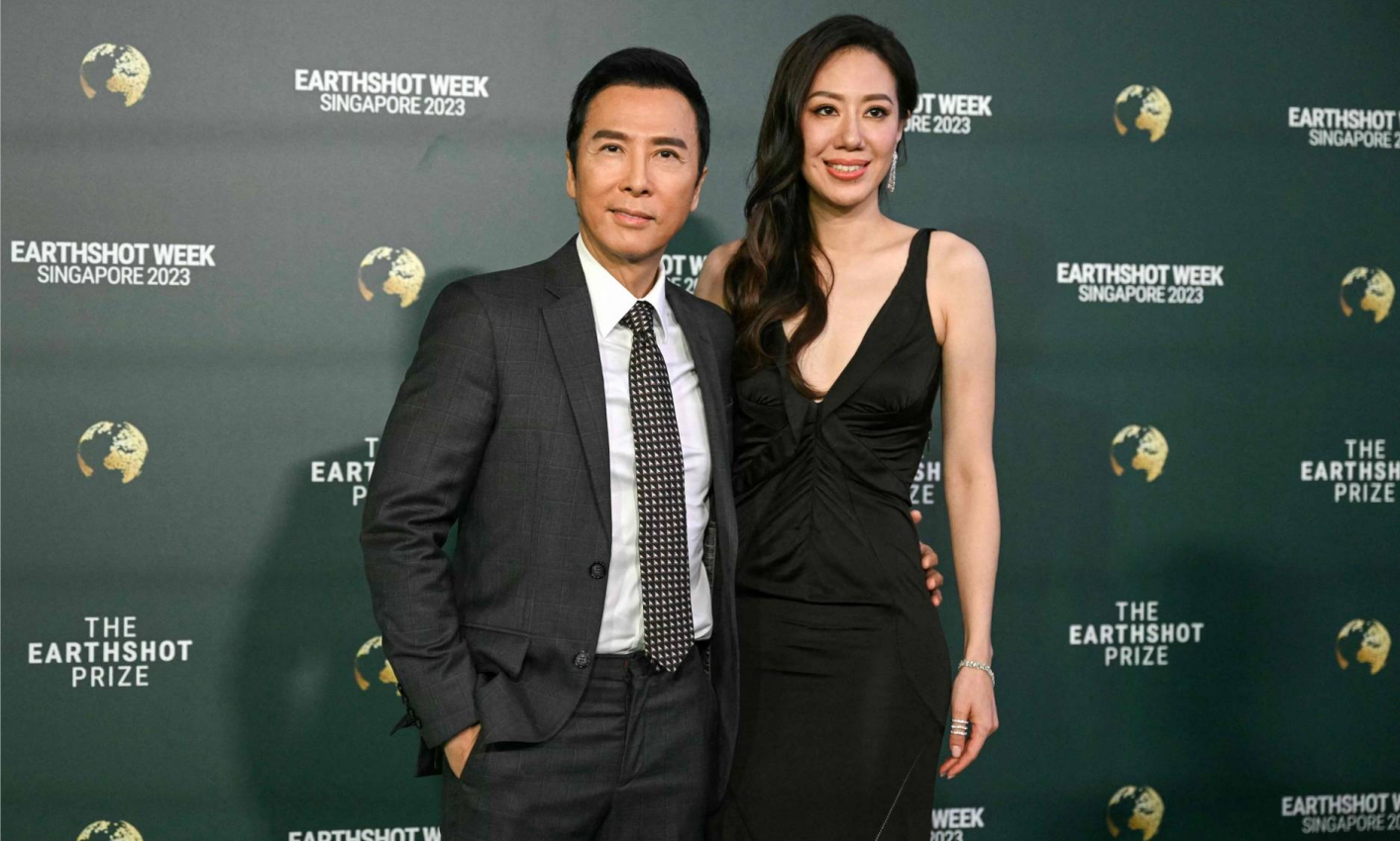 當(dāng)?shù)貢r間2023年11月7日,新加坡,甄子丹和妻子汪詩詩出席2023地球攝影獎頒獎典禮。