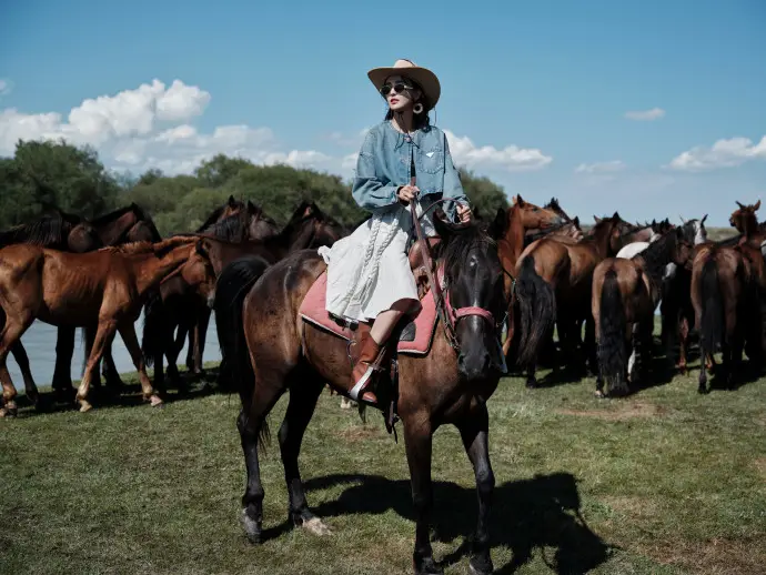 佟麗婭化身草原公主騎駿馬 頭戴牛仔帽酷颯有型