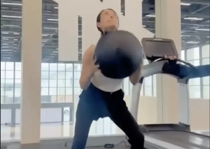 章子怡曬素顏健身的視頻 向鏡頭飛吻打招呼