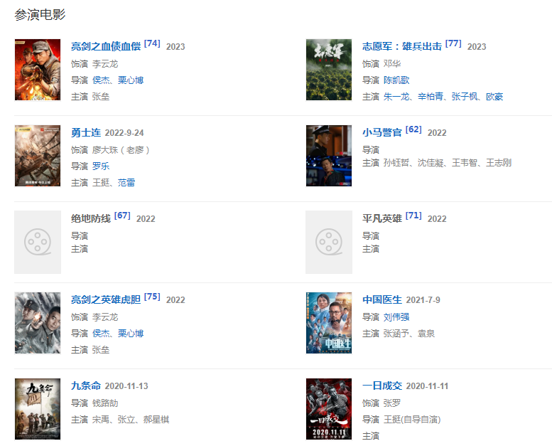 代表作品:《重案六組第三部》、《我的長征》、《戰(zhàn)士》、鐵血戰(zhàn)狼