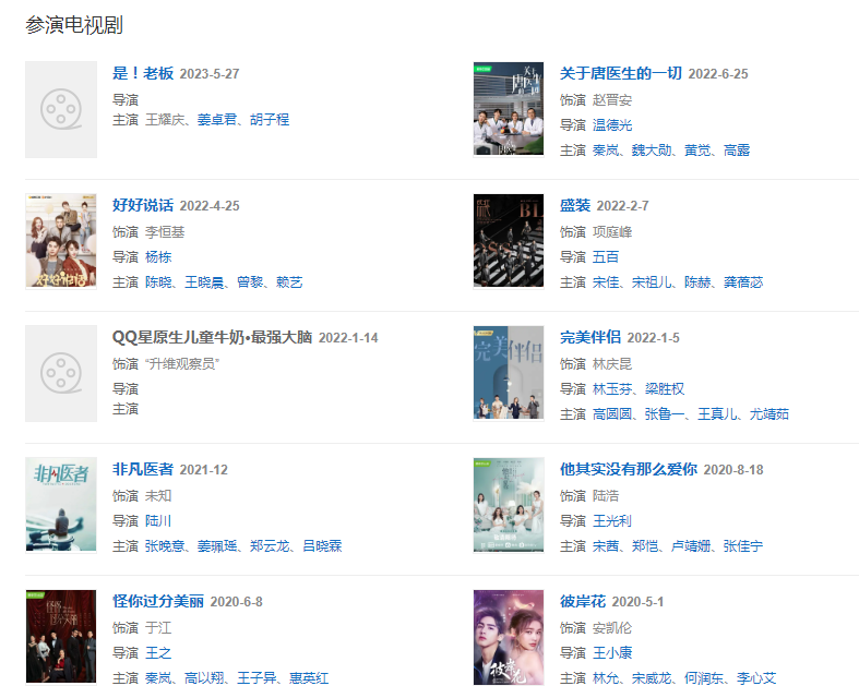 代表作品:失戀33天、浮沉、小兒難養(yǎng)、小爸爸、好先生、畢業(yè)歌、職場(chǎng)是個(gè)技術(shù)活、創(chuàng)業(yè)時(shí)代、決勝法庭