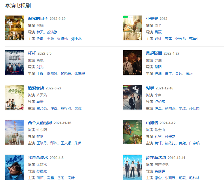 代表作品:大男當(dāng)婚、龍門鏢局、防火墻5788、那樣芬芳、暗黑者、都挺好、我是余歡水、山海情
