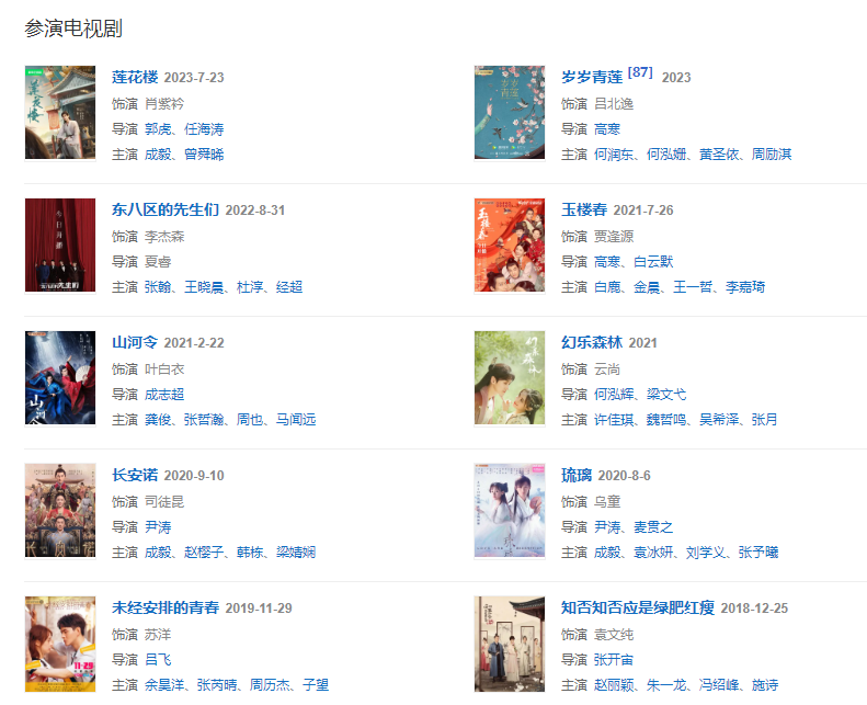 代表作品:金耳環(huán)、金玉良緣、杉杉來了、如懿傳、扶搖、琉璃、山河令、捕