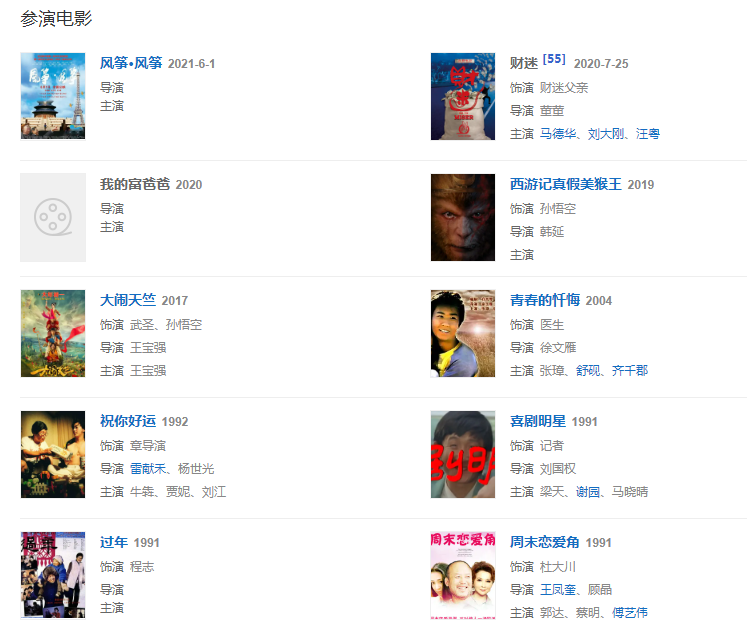 2019年,在韓延執(zhí)導(dǎo)的魔幻電影《西游記真假美猴王》中以動(dòng)作捕捉表演的形式再次飾演孫悟空,并擔(dān)任該片藝術(shù)總監(jiān)。