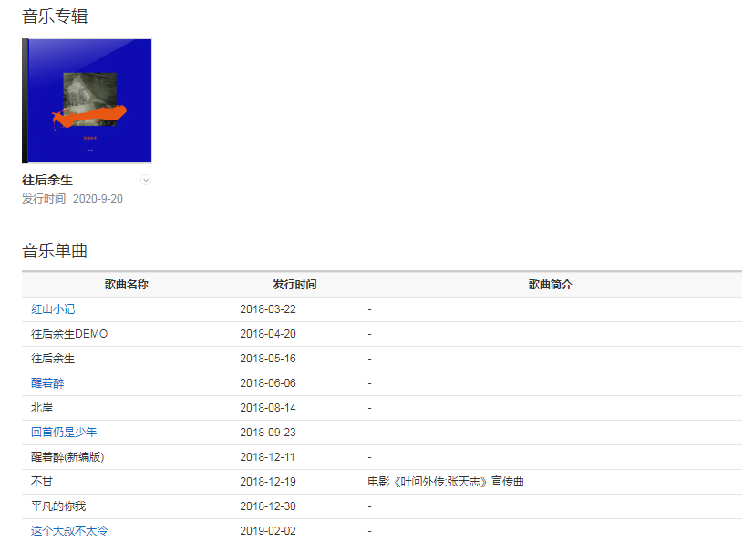 2018年,推出個(gè)人原創(chuàng)單曲《往后余生》  ,他則憑借該歌曲在抖音上獲得了一定的關(guān)注度  ;同年,其演唱的《醒著醉》  、《不甘》等歌曲相繼發(fā)布