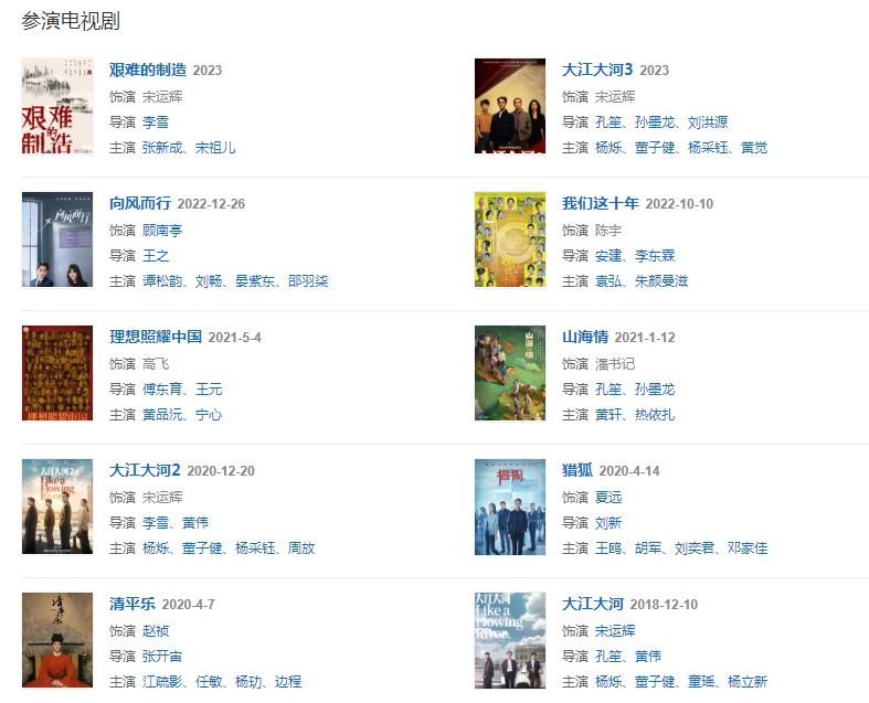代表作品大江大河、瑯琊榜、偽裝者、北平無戰(zhàn)事、如果蝸牛有愛情、嫌疑人x的獻身、清平樂、獵狐