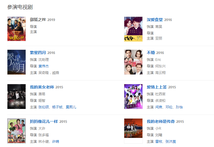 2014年參演電影《換愛(ài)七日》,在影片中飾演男主角“林浩” ;同年主演中國(guó)首部現(xiàn)代修真網(wǎng)絡(luò)劇《我的美女老師》  。