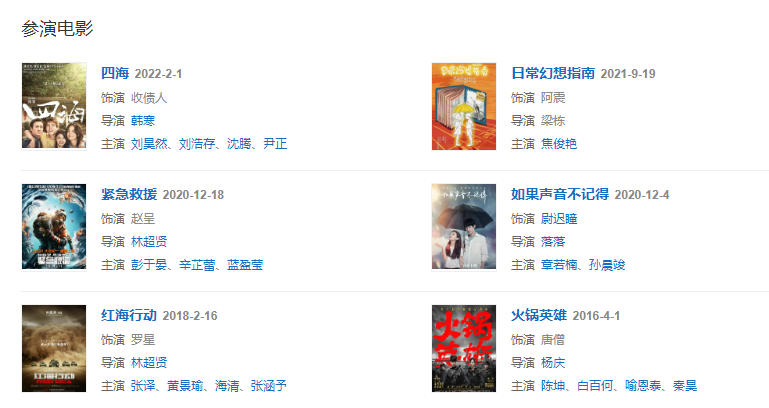 代表作品緊急救援、火鍋英雄、楚喬傳、無心法師