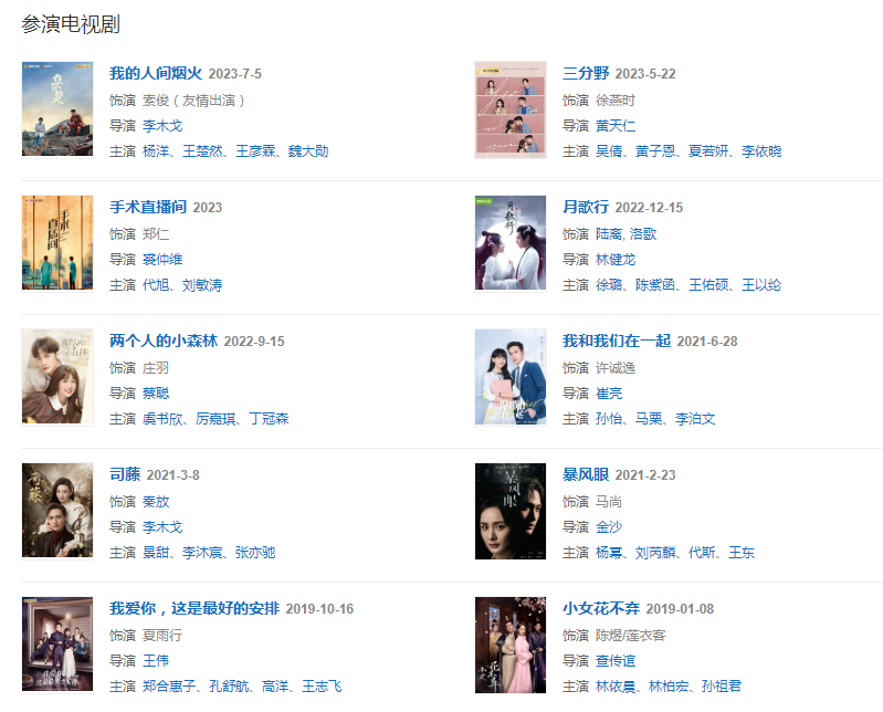 20212月,主演的國安題材都市諜戰(zhàn)劇《暴風(fēng)眼》播出  ;3月,主演的網(wǎng)劇《司藤》開播 ;6月,主演的電視劇《我和我們在一起》播出。