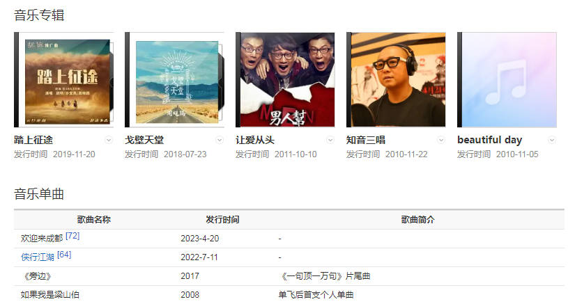 20162月,參演的都市育兒話題劇《還是夫妻》開播;48日,在《我是歌手第四季》最后一期“歌王之戰(zhàn)”幫幫唱環(huán)節(jié)搭檔老狼、汪峰、欒樹、丁武、高旗、李延亮、馬上又、陳勁組成“中國搖滾天團(tuán)”演唱歌曲《禮物》 [34]  ;客串了改編自1984年的美國電影《紅衣女郎》的《情圣》;11月,加盟明星跨界競技節(jié)目《跨界喜劇王》,3日,為劉雨霖執(zhí)導(dǎo)的電影《一句頂一萬句》獻(xiàn)唱片尾曲《旁邊》。