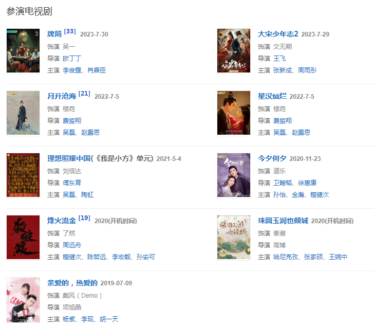 20201123日,主演的古裝言情劇《今夕何夕》在騰訊視頻播出;參演電視劇《理想照耀中國》。