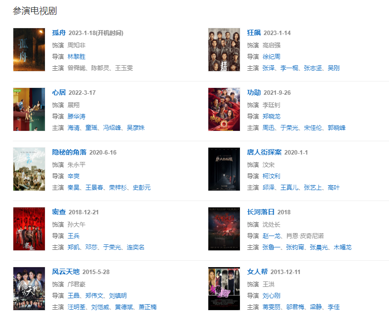 2023118日,參演的電視劇《孤舟》發(fā)布劇照并公布主演陣容。
