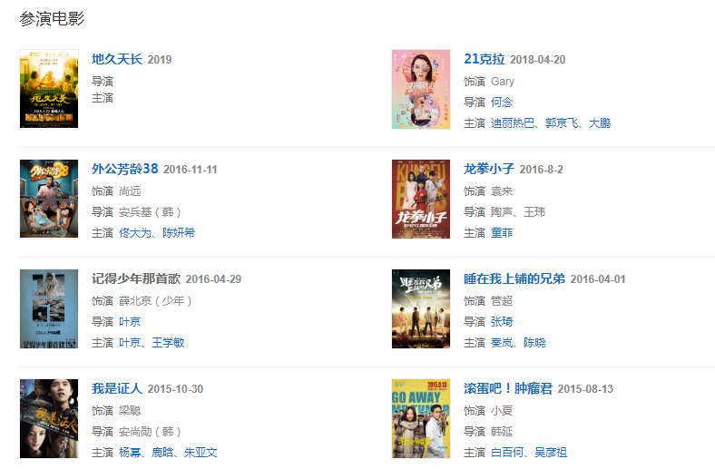2016年,主演《睡在我上鋪的兄弟》  ;其主演《記得少年那首歌1969》及現(xiàn)代喜劇片《外公芳齡38》也相繼上映  。