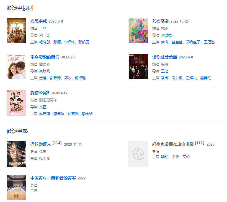 2020年,搭檔秦嵐高以翔領銜主演電視劇《怪你過分美麗》,飾演男二徐陵,并為電視劇演唱插曲,