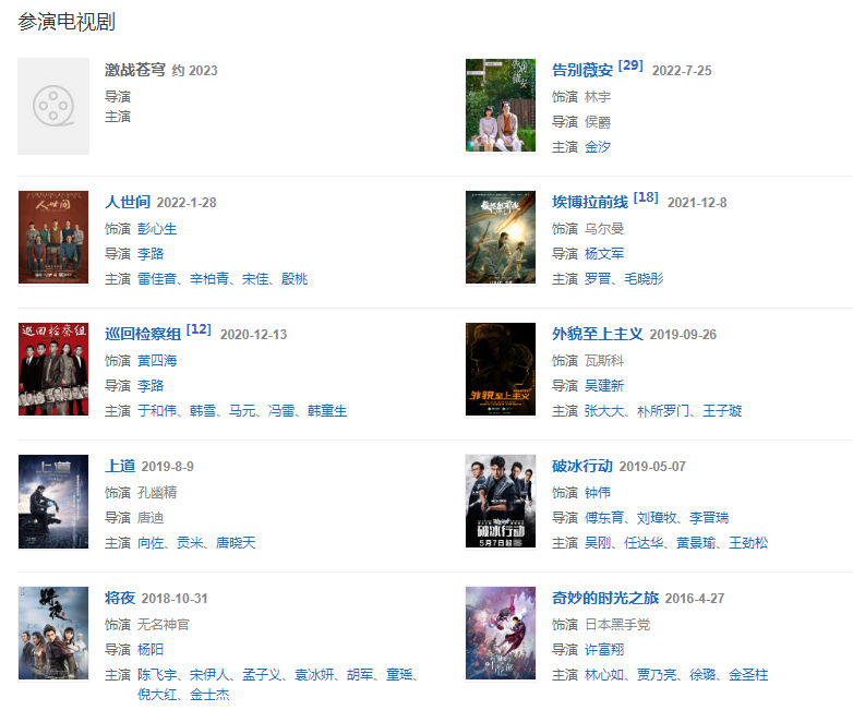 2014年,主演微電影《鯉魚》,從而正式進(jìn)入影視圈 。2016年4月,參演的都市穿越劇《奇妙的時(shí)光之旅》開(kāi)播;8月,參演都市愛(ài)情劇《北京遇上西雅圖》;12月,主演的現(xiàn)代動(dòng)作電影《江湖水》上線。 。2018年,主演的網(wǎng)絡(luò)電影《九門提督》上線 。2019年,參演的緝毒題材懸疑刑偵劇《破冰行動(dòng)》播出,在劇中飾演鐘偉;8月9日,主演的硬核熱血?jiǎng) 渡系馈凡コ?;9月6日,主演的人物傳記影片《樵夫·廖俊波》在全國(guó)上映;9月26日,主演的青春校園劇《外貌至上主義》播出。202011月20日,主演犯罪題材電影《除暴》上映;12月13日,參演的檢察法治劇《巡回檢察組》開(kāi)播,飾演黃四海。2021年,參演電視劇《埃博拉前線》 ;同年,主演軍旅題材電影《排爆手》。2022年,主演由茅盾文學(xué)獎(jiǎng)獲獎(jiǎng)作品改編的現(xiàn)實(shí)題材巨作電視劇《人世間》 ;5月,主演張末執(zhí)導(dǎo)的電影《拯救嫌疑人》正式開(kāi)機(jī) ;同年10月,由洪浚嘉領(lǐng)銜主演的網(wǎng)劇《告別薇安》在騰訊視頻播出 。