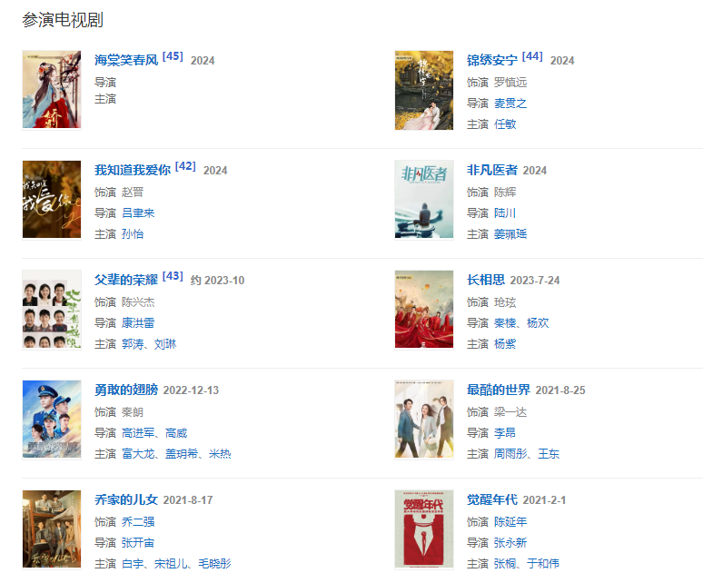 代表作品:覺醒年代、喬家的兒女、長相思