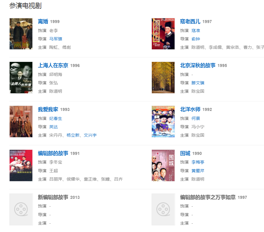 代表作品:編輯部的故事、活著、甲方乙方、不見不散、沒完沒了、大腕、手機(jī)、夜宴、非誠勿擾、讓子彈飛