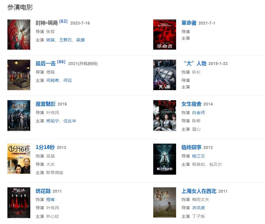 景崗山參與了《新水滸傳》、《繡花鞋》、《女生宿舍》等影視作品,憑借精湛的演技將人物刻畫得豐盈而鮮活,在他的演繹下,人物活生活現(xiàn),令人難以忘懷,他完成了從偶像歌手到實(shí)力演員的蛻變。