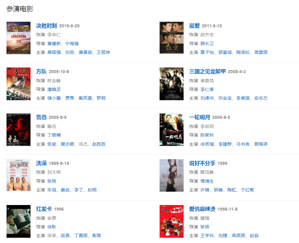 代表作品:《英雄無(wú)悔》《光榮之旅》《公安局長(zhǎng)》