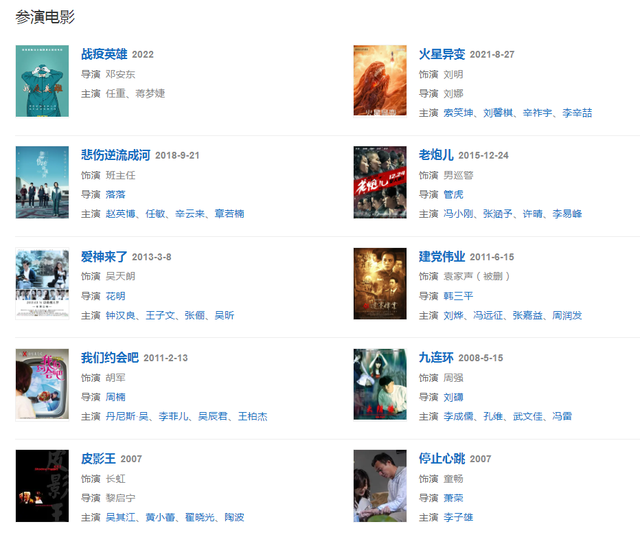 2007年,在劇情電影《皮影王》中飾演男主角長(zhǎng)虹 。