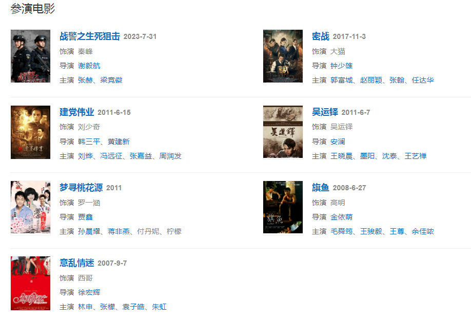 代表作品:毛岸英、二叔、滿倉進城、咱家、百戰(zhàn)天狼