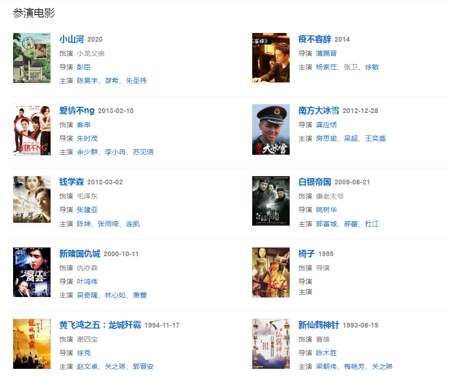 代表作品:還珠格格、鐵齒銅牙紀(jì)曉嵐、火燒圓明園、垂簾聽(tīng)政、倚天屠龍記、鐵將軍阿貴