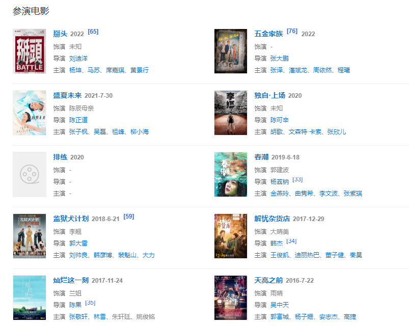 2018320日,主演郭寶昌導(dǎo)演執(zhí)導(dǎo)的年代大劇《東四牌樓東》在橫店開機;621日,主演的電影《監(jiān)獄犬計劃》上映  。