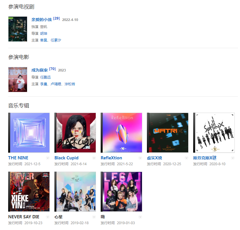 20203月,參加愛奇藝女團青春成長節(jié)目《青春有你第二季》;隨后,與其他訓(xùn)練生以團體形式共同演唱節(jié)目主題曲《YES!OK!》。530日,在《青春有你第二季》總決賽中以第5名的成績加入“THE9”組合正式成團;615日,成為《農(nóng)夫山泉TOT氣泡水》代言人   ;同年,隨組合代言《誅仙》手游青春版  。726日,隨組合參加的大型星素結(jié)合勵志體驗節(jié)目《極限挑戰(zhàn)6》定檔在東方衛(wèi)視播出。86日,與趙小棠參加治愈系都市飲食觀察節(jié)目《未知的餐桌》;810日,隨THE9發(fā)布組合首張EP專輯《斯芬克斯X謎》;813日,參加的綜藝節(jié)目《奇妙小森林》第十期定檔在芒果TV播出;94日,參與錄制的THE9首檔常駐合體綜藝《非日常派對》在愛奇藝首播;919日,參加了浙江衛(wèi)視好奇主題晚會《百度好奇夜》。926日,隨組合參加的綜藝節(jié)目《TOP榮耀時刻》第三期定檔在CCTV-3播出。927日,參與錄制央視《我和我的家鄉(xiāng)》中的小城故事MV,并負責(zé)rap歌詞部分;125日、6日,隨組合獲2021愛奇藝尖叫之夜尖叫女神獎;1231日,加盟《江蘇衛(wèi)視2021跨年演唱會》,攜手郎朗合作演繹歌曲《不想長大》。