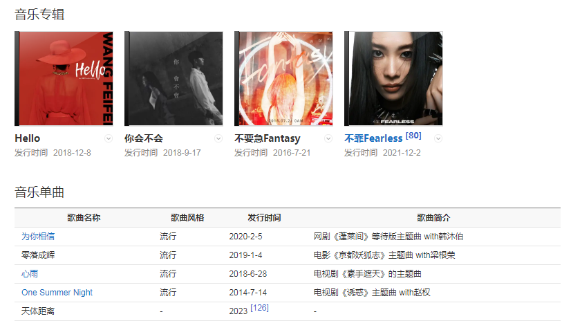 20217月,主演電視劇《奇妙正在書入中》開機;122日,發(fā)布個人專輯《Fearless不霏》,包含歌曲《Stalker窺探者》《狩獵阿多尼斯》《瘋狂灰姑娘》。