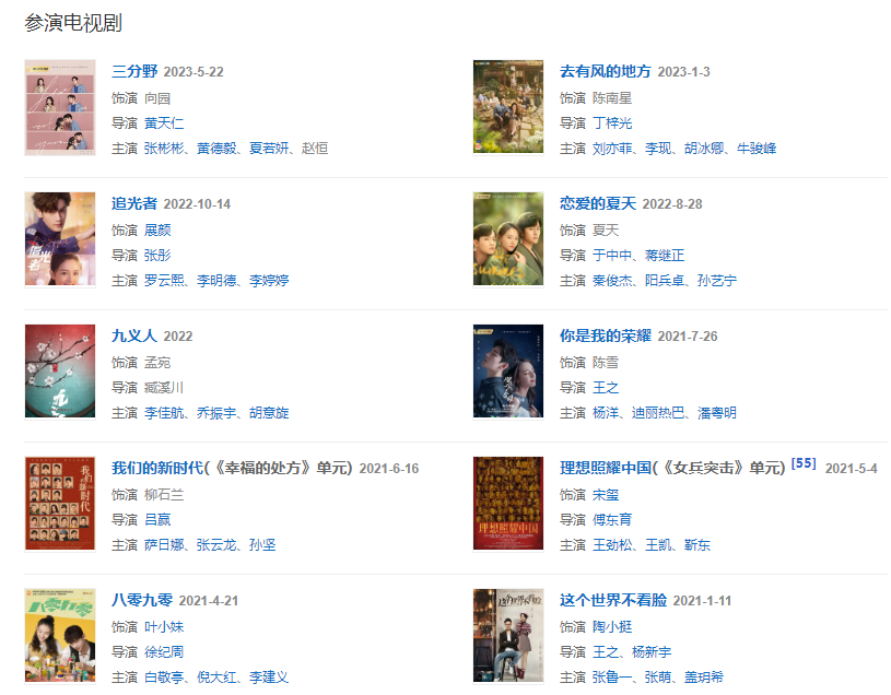 2021年,主演的都市劇《八零九零》開播 ;同年,領(lǐng)銜主演的都市勵(lì)志劇《追光者》開機(jī) 。