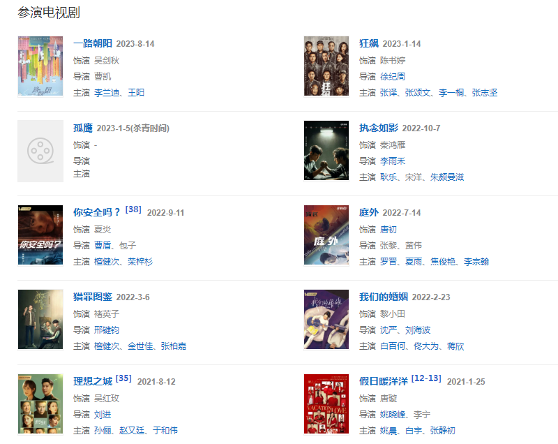 2023年1月14日,主演的電視劇《狂飆》播出,飾演陳書婷。