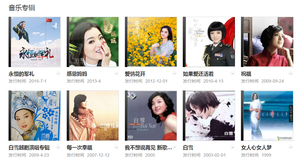 2003年,推出個人同名音樂專輯《白雪》。