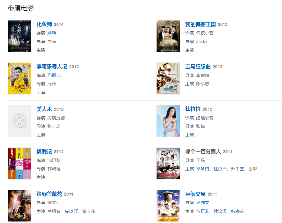 代表作品:非誠勿擾、倩女幽魂、龍鳳店、每個(gè)人都有秘密