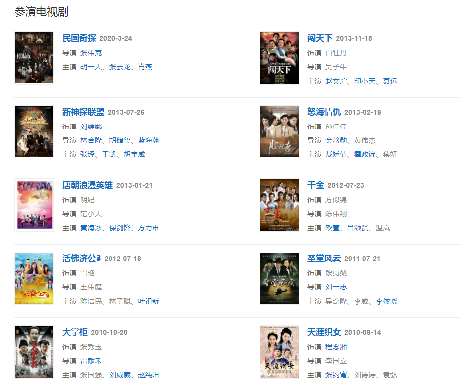 代表作品:少年包青天3、胭脂雪、仙劍奇?zhèn)b傳三、活佛濟公三、天涯織女