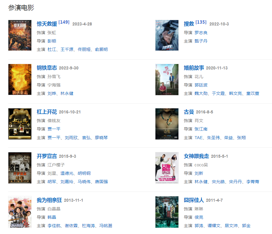 代表作品:錯(cuò)愛一生、淑女之家、偏偏愛上你、娛樂(lè)沒(méi)有圈、天外飛仙、北平往事、福星高照豬八戒、飄雪、想起、巡回檢察組
