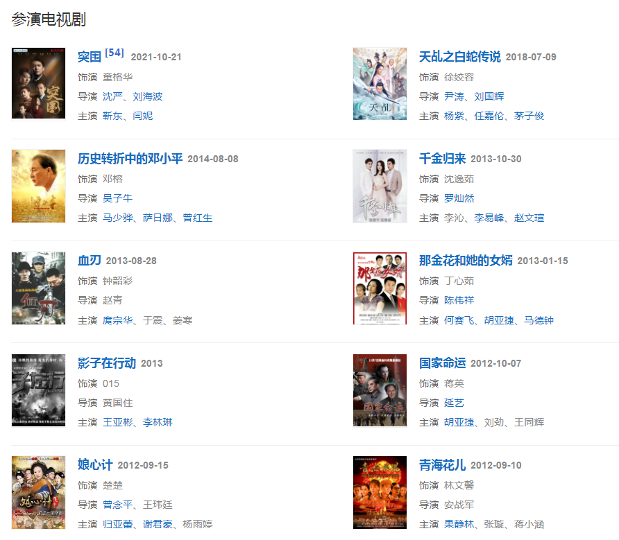 代表作品:手心手背、牽手、為奴隸的母親、那金花和她的女婿、麻辣婆媳、歷史轉(zhuǎn)折中的鄧小平、攀登者