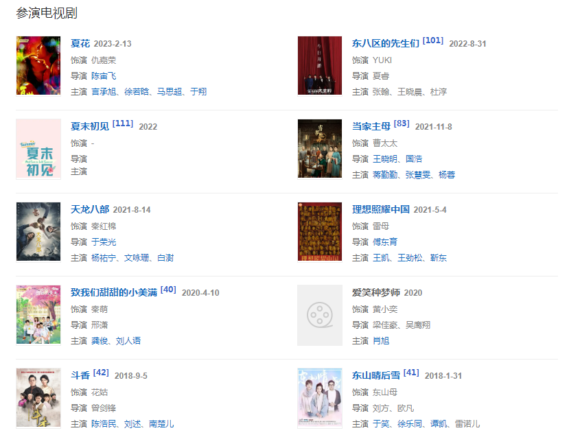 代表作品:上錯(cuò)花轎嫁對(duì)郎、還珠格格第三部、風(fēng)云2、愛,在離別時(shí)、新女駙馬、宮廷畫師郎世寧、十全九美、識(shí)色,幸也
