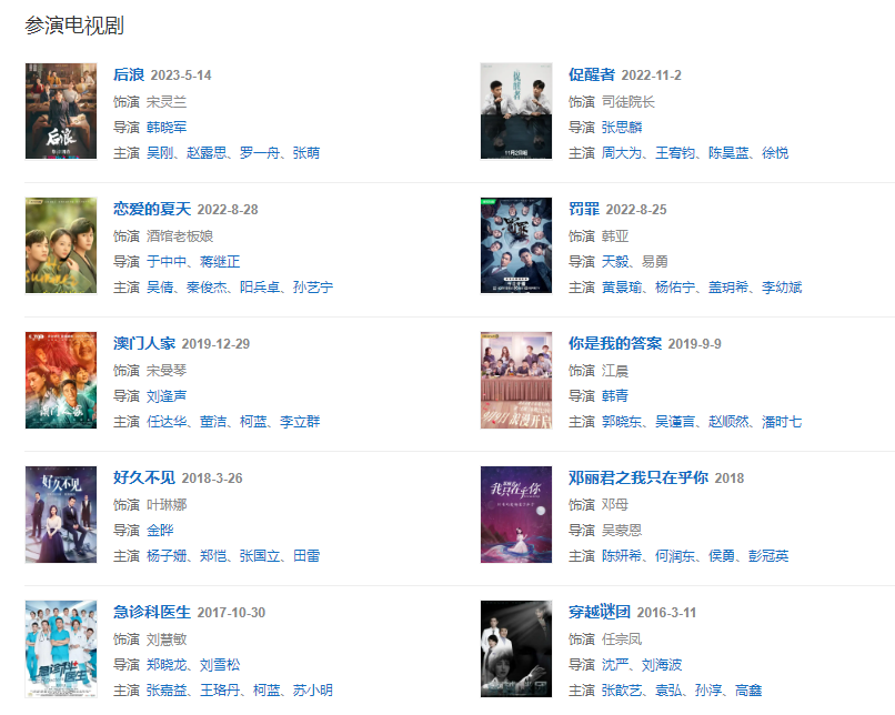 2016年參演都市醫(yī)療行業(yè)題材電視劇《急診科醫(yī)生》。