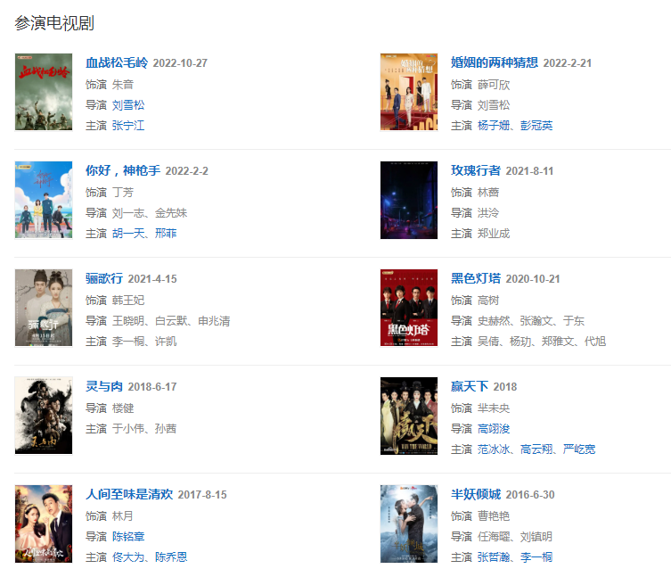 2022221日,主演都市女性勵志輕喜劇《婚姻的兩種猜想》在湖南衛(wèi)視播出;222日,特別出演當代都市青春劇《你好,神槍手》。