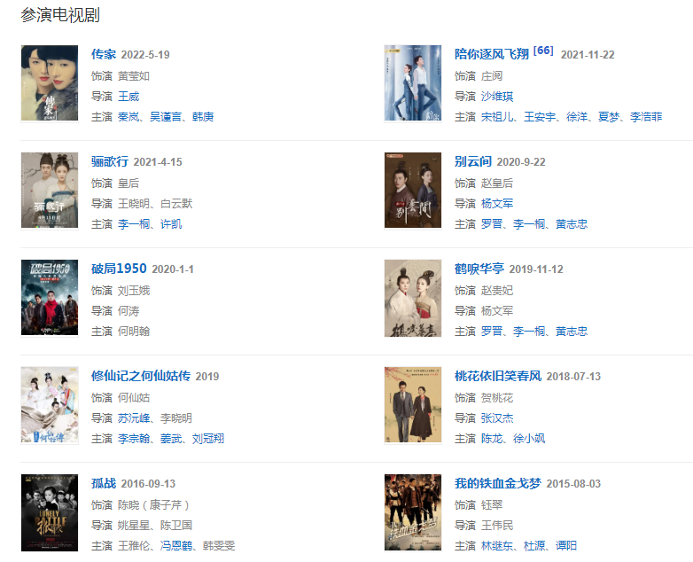 2021415日,主演的古裝愛情輕喜劇《驪歌行》播出,在劇中飾演皇后。1122日,參演的青春競技甜燃劇《陪你逐風飛翔》在湖南衛(wèi)視播出。