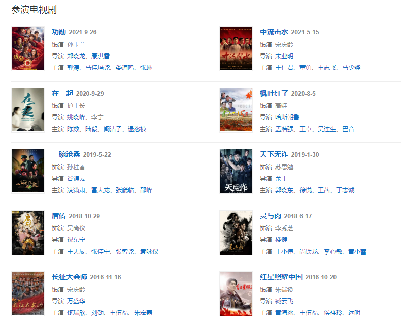 2016年4月,參演革命歷史劇《紅星照耀中國(guó)》,飾演上海地下黨政治局辦事處負(fù)責(zé)人朱端綬 [13] ;同年,參演電視劇《識(shí)汝不識(shí)丁》,飾演陳文帝的皇姐陳婧 。