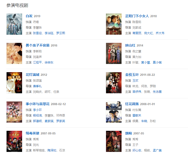 擔(dān)任監(jiān)制、制片人,策劃、制作并出品經(jīng)典電視劇《情迷海上花》、《生命因你而美麗》、《花燈滿城》等。此外出演話劇《志摩歸去》中的陸小曼,話劇《一代名優(yōu)》。