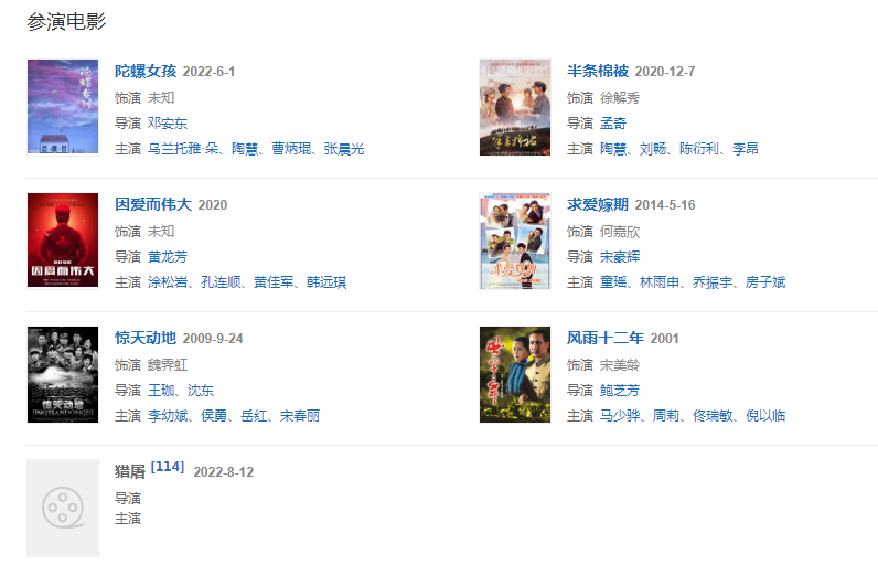 2019年,出演獻(xiàn)禮電影《半條棉被》