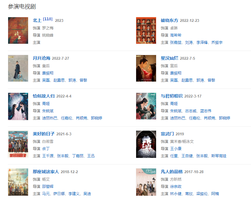 2011年,憑借諜戰(zhàn)劇《斷刺》獲得第29屆中國(guó)電視劇飛天獎(jiǎng)優(yōu)秀女演員提名。2013年,主演戰(zhàn)爭(zhēng)劇《亂世三義》。