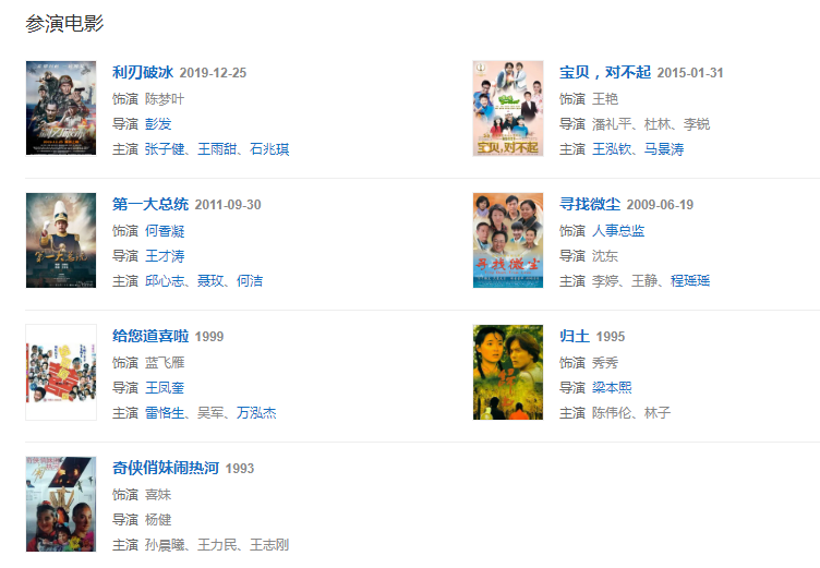 1993年,出演個人首部電影《奇?zhèn)b俏妹鬧熱河》。