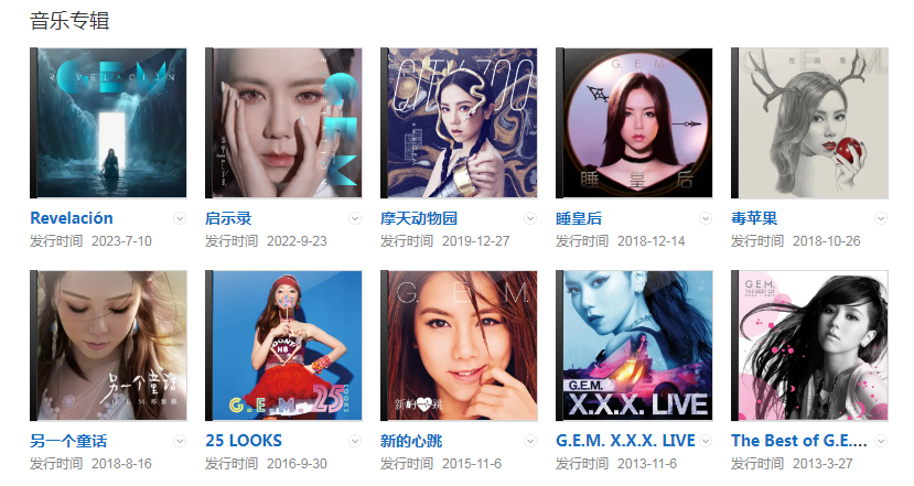 代表作品:泡沫、光年之外、來自天堂的魔鬼、句號、倒數(shù)、我的秘密、再見、多遠都要在一起、摩天動物園、A.I.N.Y.、后會無期、Where Did U Go