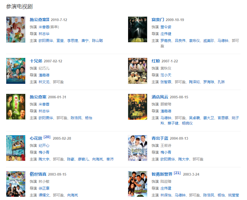 代表作品:刑事偵緝檔案、創(chuàng)世紀(jì)、酒店風(fēng)云、法網(wǎng)伊人